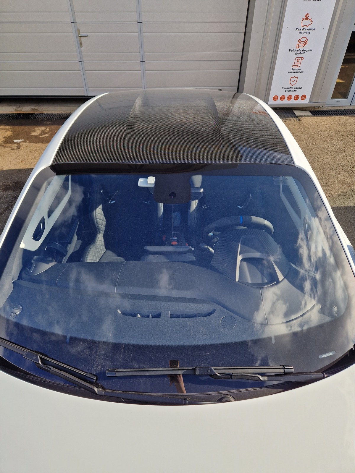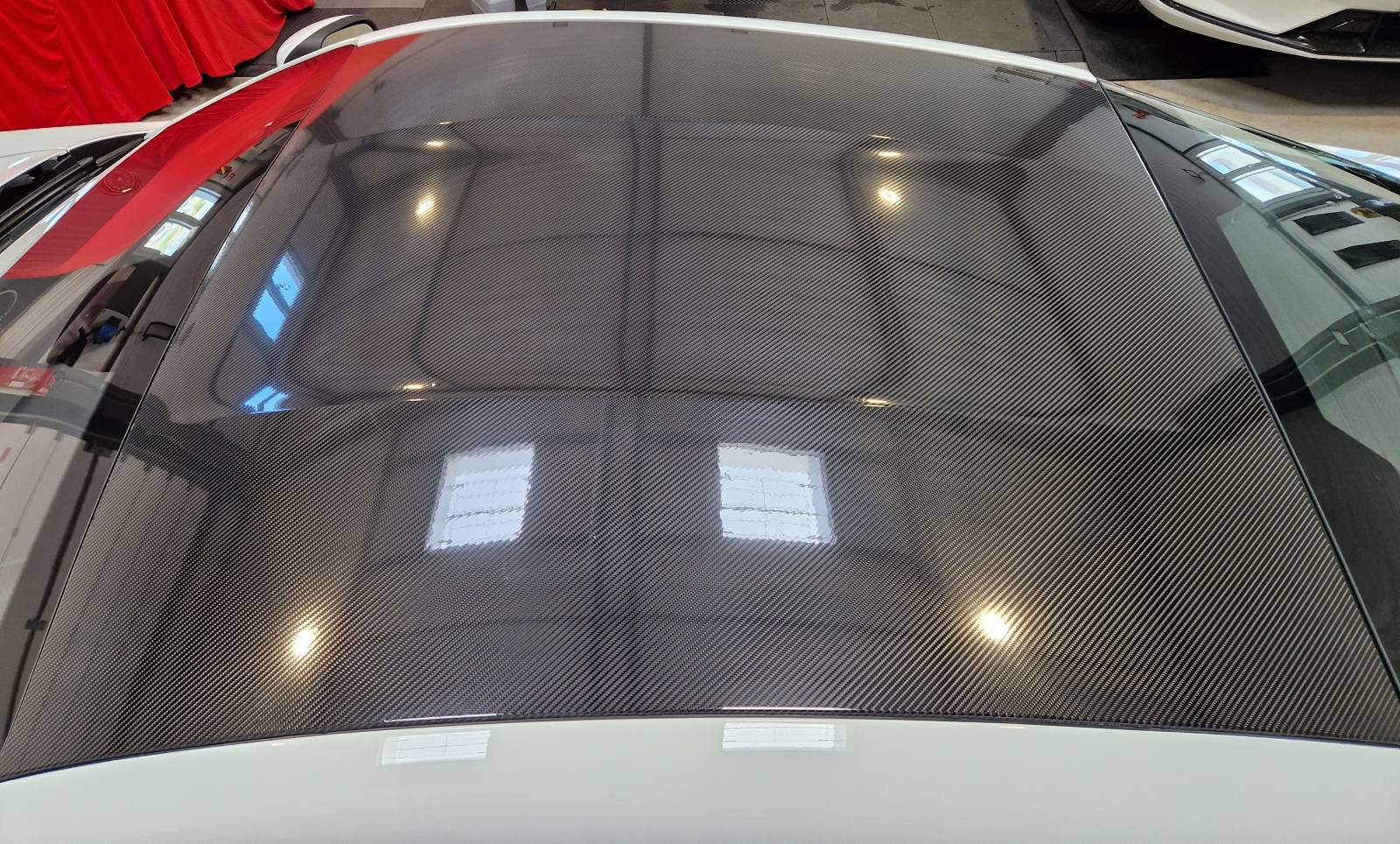 Pour différencier son Alpine A110 des autres et la rendre unique, notre client de Vienne nous a demandé de poser un film ppf en carbone sur le toit blanc.
