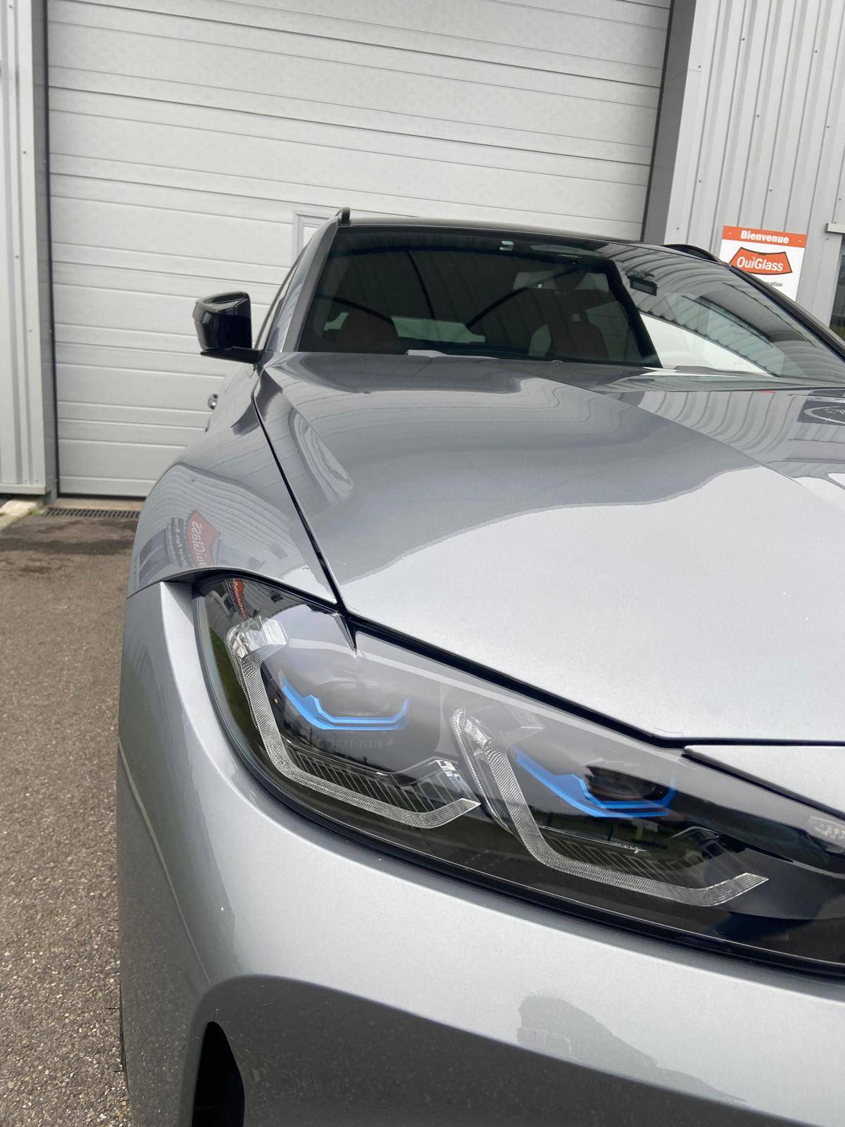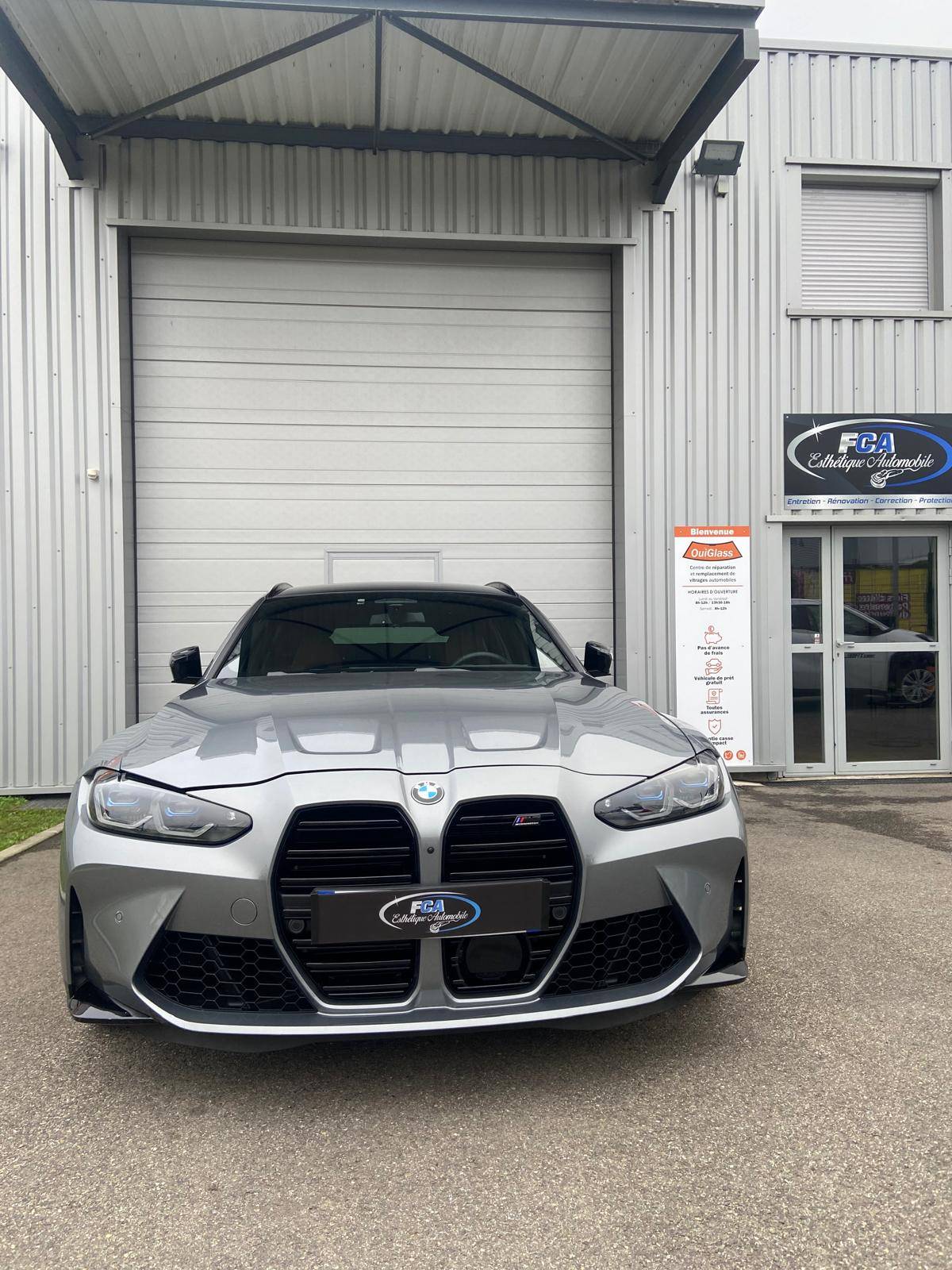 Le propriétaire de cette BMW M3 compétition de Lyon souhaitez protéger avec un film PPF la face avant de celle-ci .
